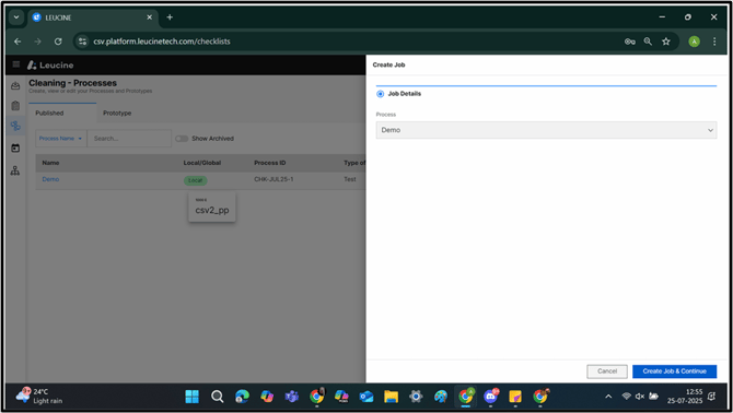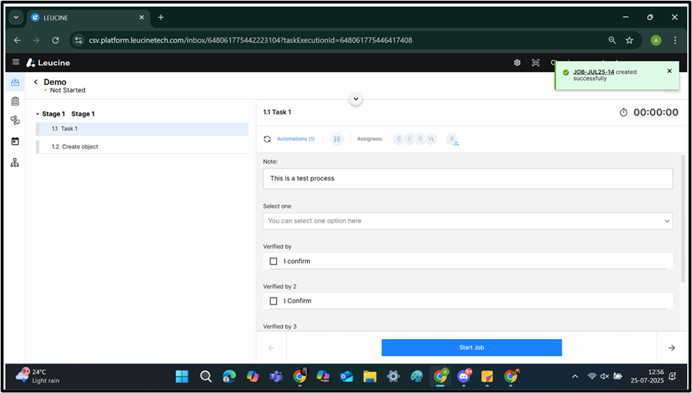 After job creation, users are automatically redirected to the execution screen, removing the need to locate it in the inbox. A confirmation modal now prompts users when a job is ready for completion—improving workflow continuity and reducing missed completions